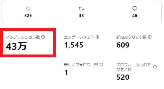1ツイートで43万インプレッション達成 |