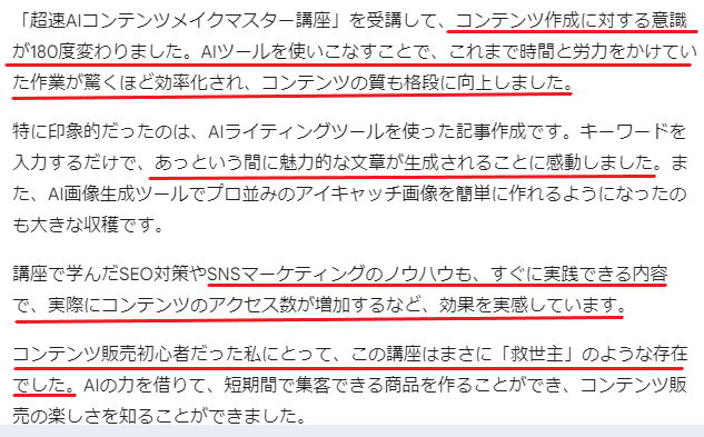 AIコンテンツ販売を学び実践するとこんなメッセージを沢山いただけるようになる